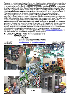 NICK BARRETT.COM MY WORLD "Hands On" > MFG'g, ENGINEERING, DESIGN, PROCESS, CONTROL, HMI, DATA to Human, it's in the DETAILS - Micro to Macro "BIG PICTURE", Drill Down / Scale Up < Anything !